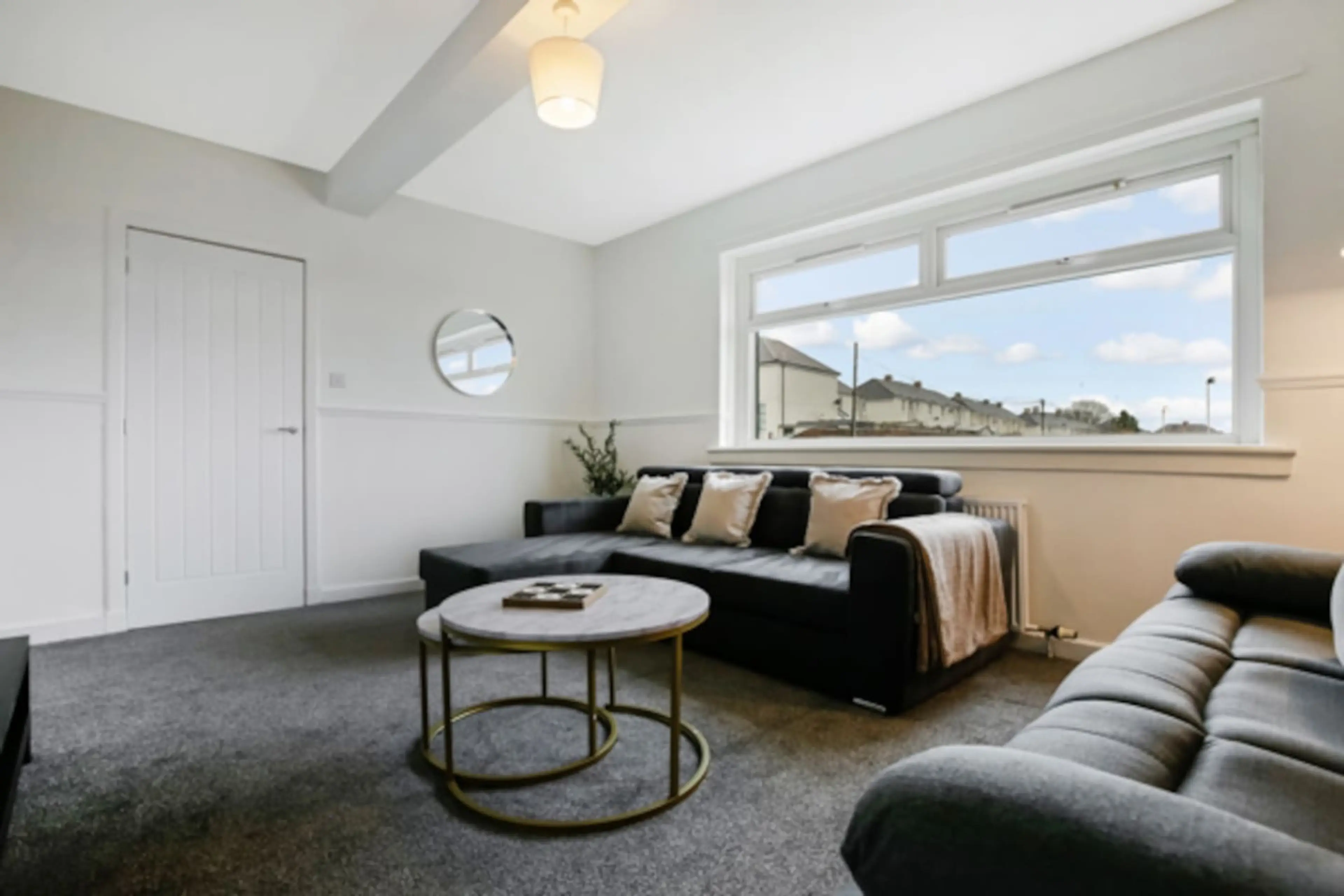 Recharge Stays proudly presents our freshly renovated 3-bedroom house in Wishaw. Sleeping up to 8 guests with 1 double bed, 4 singles and a double sofa bed. Enjoy a modern bathroom, fully equipped kitchen, and large living area with TV and WiFi, and free parking. Includes all home comforts - towe...